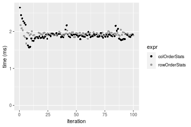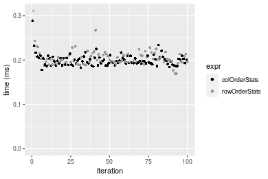 | 1 | colOrderStats | 0.002396 | 0.0037805 | 0.0062407 | 0.0070845 | 0.0077215 | 0.021831 |