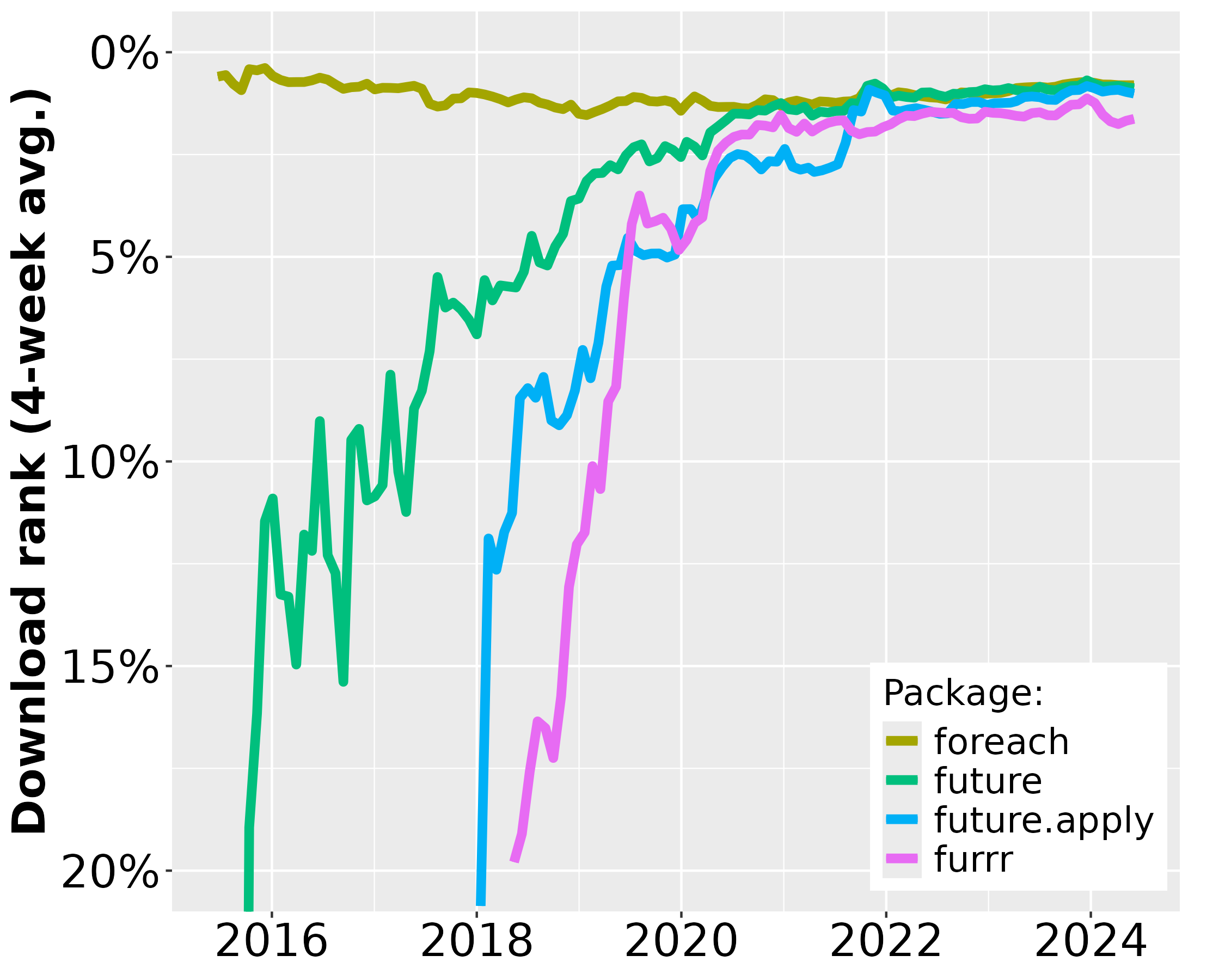 Package future provides fundamental building blocks for evaluating R code in parallel